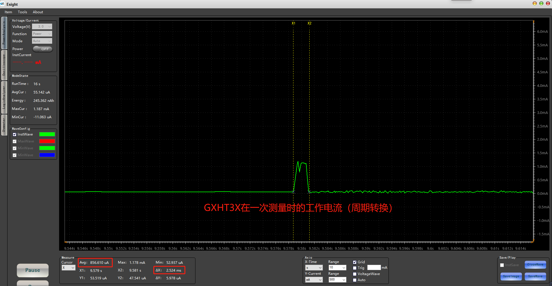 接下来我们开始评测温湿度传感器GXHT3X的相关功耗。