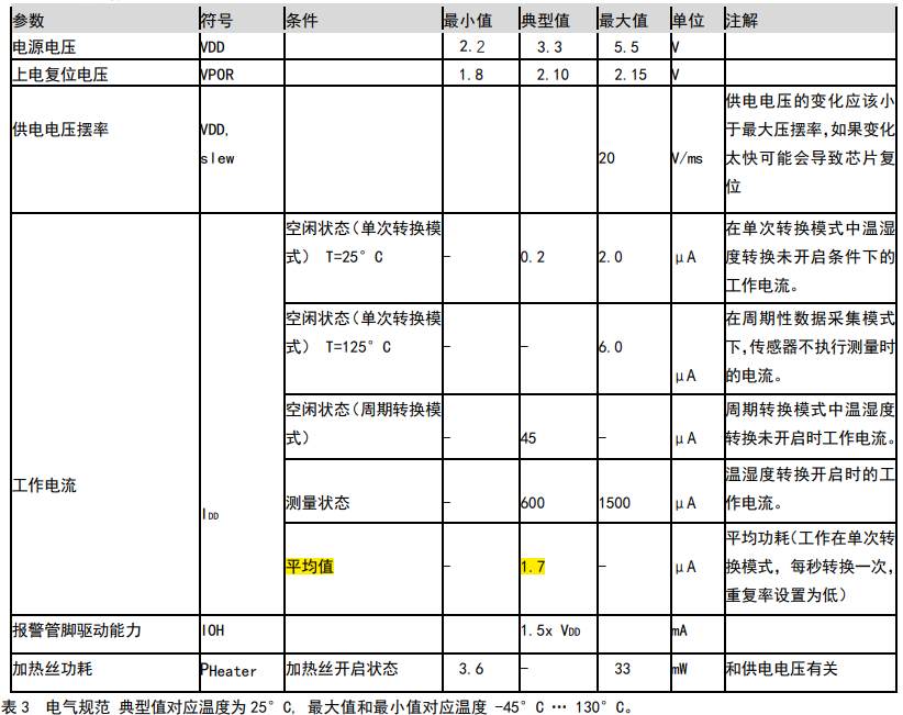 1.单次转换模式,每秒转换一次,重复率设置为低条件下的平均电流,典型值1.7uA;